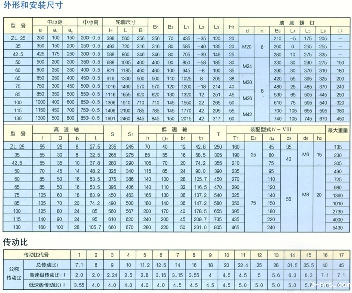 ZL系列圆柱齿轮减速机它们主要用于矿山、冶金、水泥、建筑、化工、轻工等各种机械设备的减速传动。高速轴转速不超过1500r/min,齿轮圆周速度不大于18m/s,工作环境温度为-40℃~+40℃,可正反转运行。